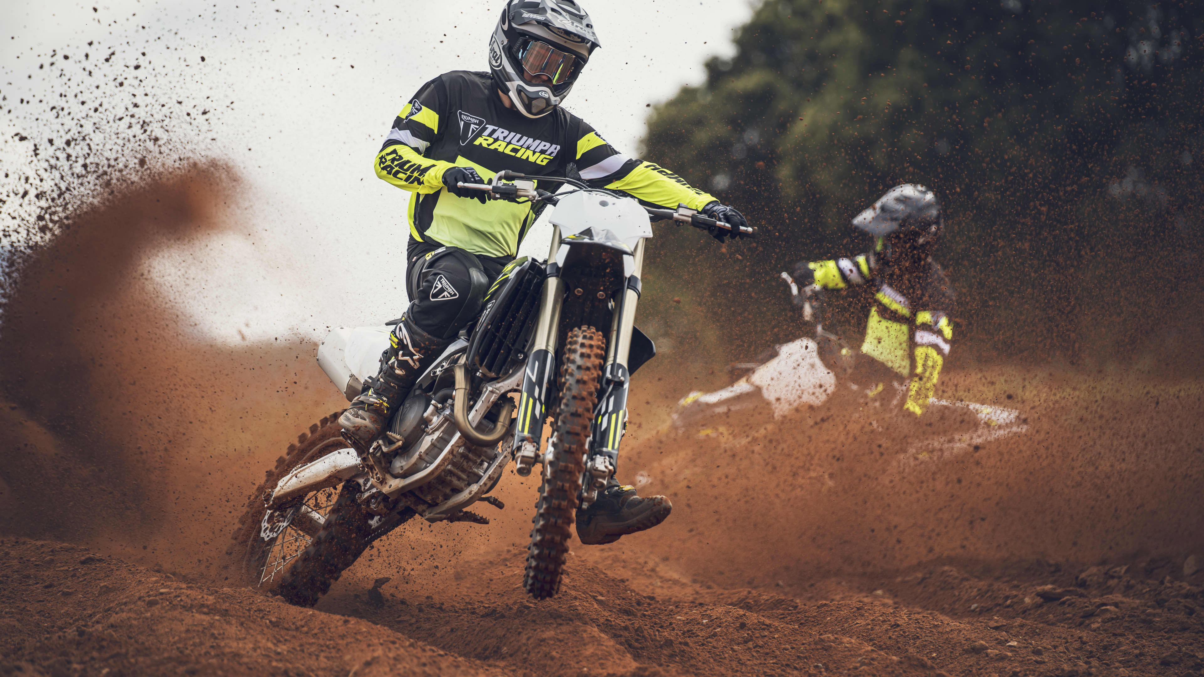 Triumph motocross bikes are designed from the ground up to deliver the winning edge. Lightweight, powerful, and packed with rider-focused technology, they offer the precision, control, and durability needed to push harder, ride faster, and lead every lap. Developed with championship-winning expertise and a commitment that goes ALL IN - from bike development to race day, they're built for racers who demand more.